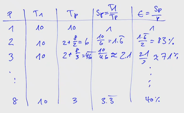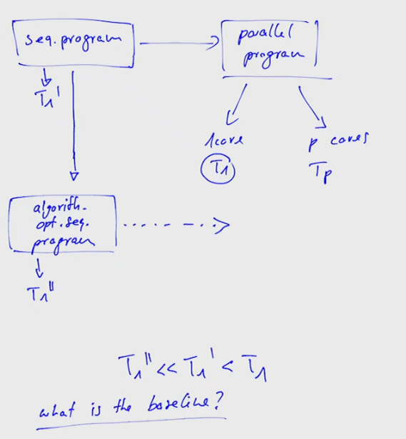 It’s theoretically possible (though rare) to have . This is called super-linear speedup, and it usually indicates that something unusual is happening (e.g., the parallel version is exploiting cache effects more effectively than the sequential version).