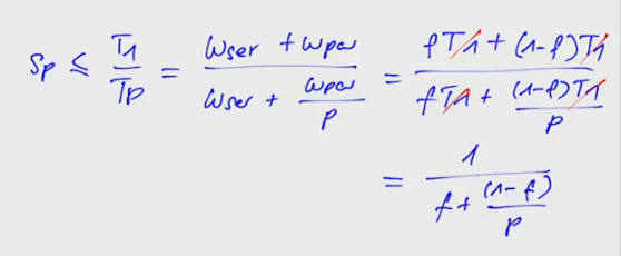 Let be the fraction of the total work that is non-parallelizable (serial). Then: