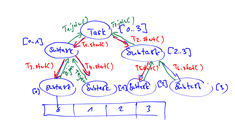 sumfunction (orrunmethod, depending on the implementation) to handle the other half of the array in the current thread. - We