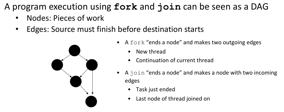 forkcreates two outgoing edges (new thread and continuation of current thread).joincreates a node with two incoming edges (task ended and last node of thread joined on).