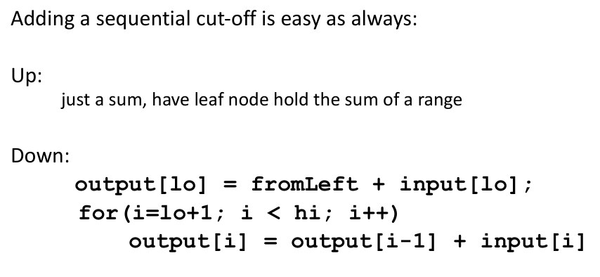 As always, we can add a sequential cutoff to improve performance by reducing the overhead of task creation for small subproblems.