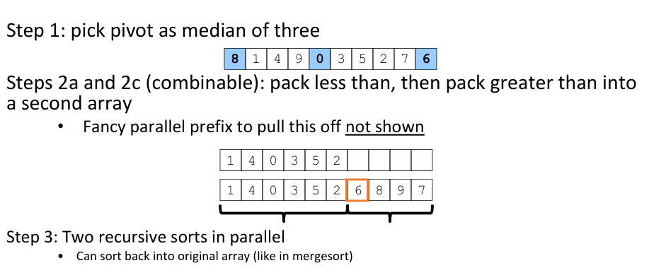It turns out, however, that the partition step can be parallelized using the techniques we’ve learned (specifically, pack).