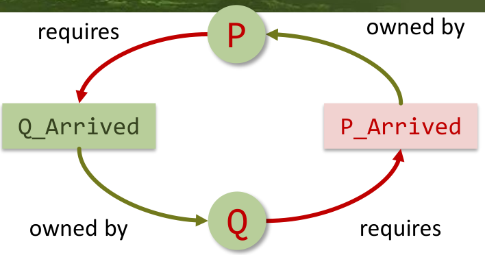 Problem: If P executes acquire(Q_Arrived) and blocks, and Q executes acquire(P_Arrived) and blocks, neither can execute release to signal the other. Deadlock!