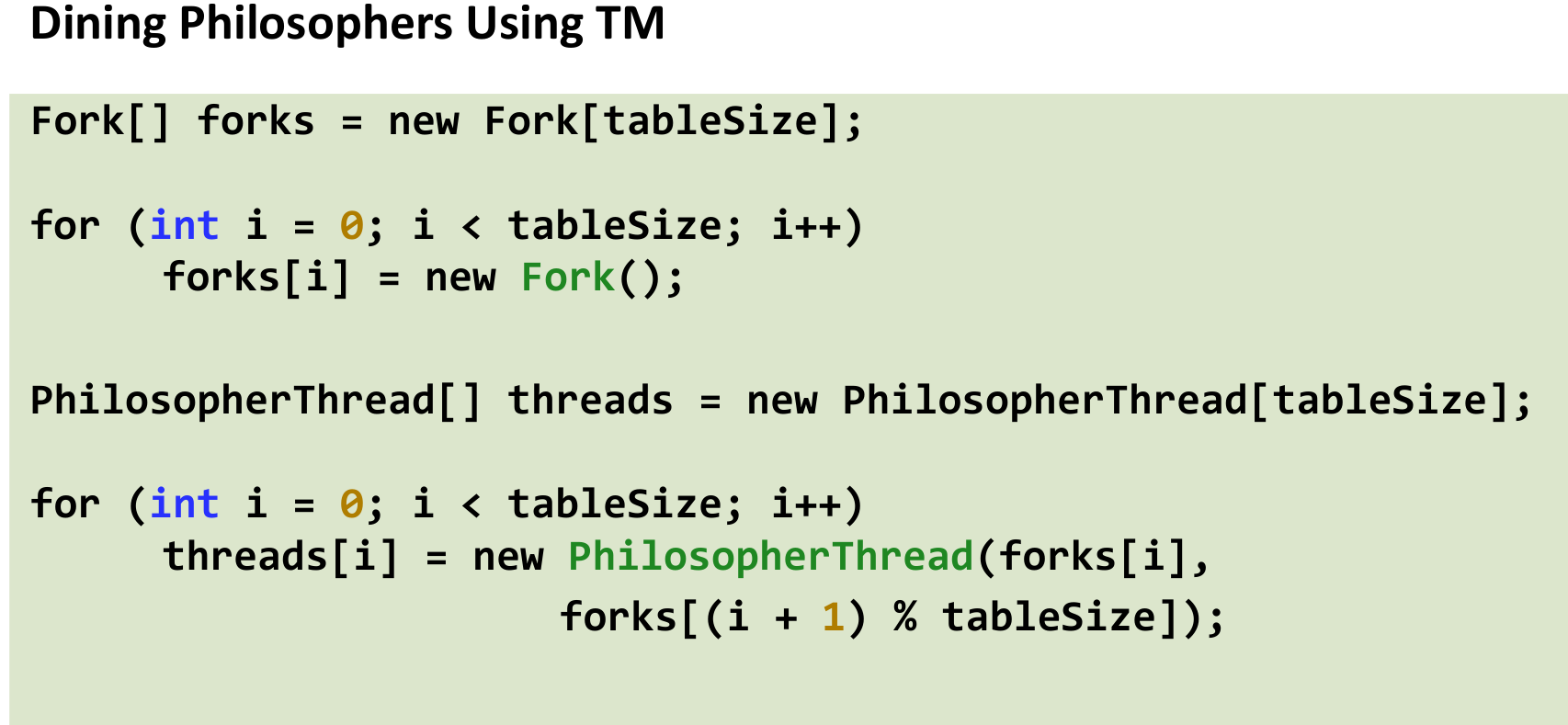 - Illustrate TM’s utility with the Dining Philosophers example.