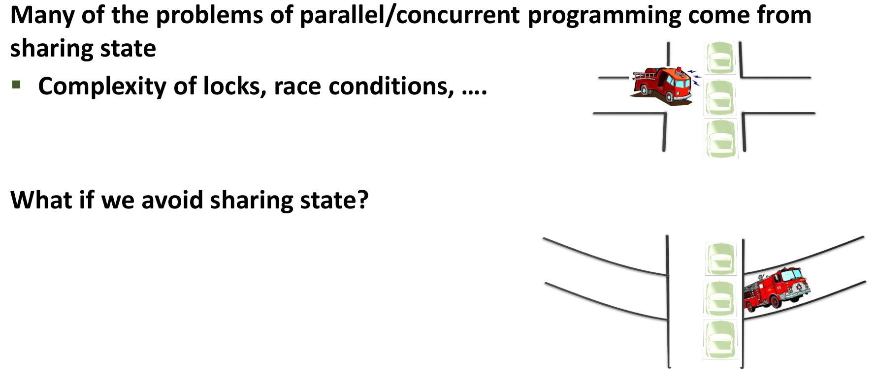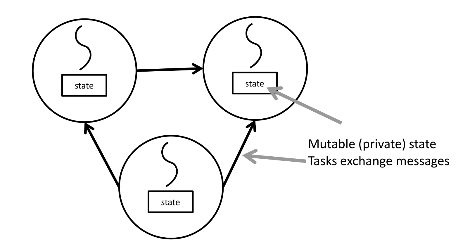Question: Can we design parallel programs by avoiding direct sharing of mutable state?