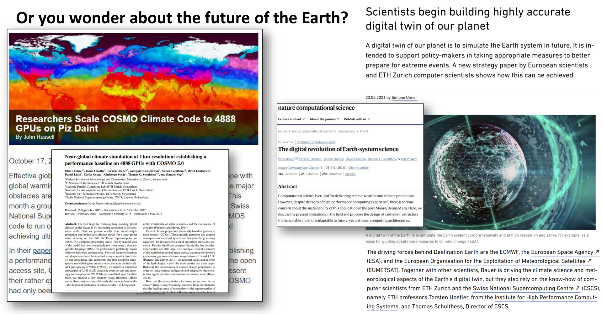 …like detailed weather forecasting crucial for daily life and disaster preparedness (where ETH and CSCS have made significant contributions using GPU acceleration)…