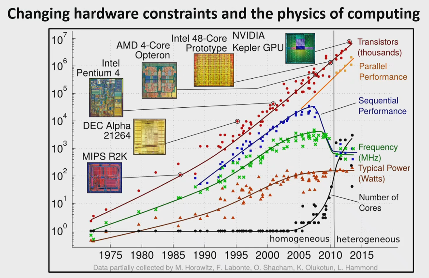 However, this incredible exponential progress (“Moore’s Law” and related scaling) is facing significant headwinds. While we might have once extrapolated towards Petaflops (10^15) on single devices in the near future, reality is proving more complex. Performance scaling is becoming interesting again because the easy paths are ending.