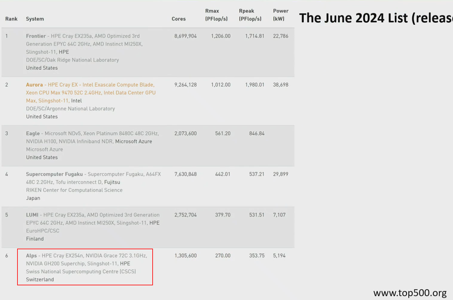As of the latest list (June 2024), machines like Frontier remain at the top, while new systems like the ALPS supercomputer at the Swiss National Supercomputing Centre (CSCS) represent the state-of-the-art, combining traditional HPC capabilities with massive AI power using advanced hardware like NVIDIA’s Grace CPU and Hopper GPUs. Access to such machines enables cutting-edge research.