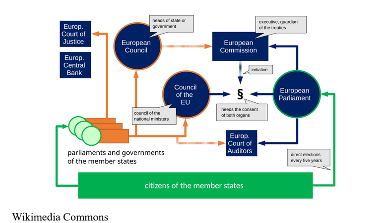 - European Parliament (EP): Directly elected body representing EU citizens; co-legislator with the Council.