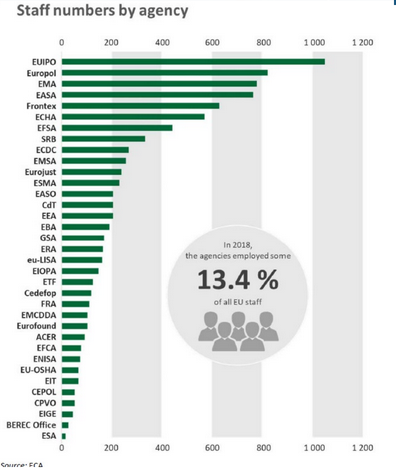 The EU has around 35 specialized agencies located across 23 member states (e.g., ENISA in Greece), mostly established between 2000-2010. These agencies possess their own legal personality, are established via secondary law, and are distinct from core EU institutions. Governed jointly by the Commission and member states, they hold varying regulatory or operational competences. Their creation often stems from crises or member states’ reluctance to delegate further powers directly to the Commission. As of 2018, agency staff constituted roughly 13.4% of all EU personnel.